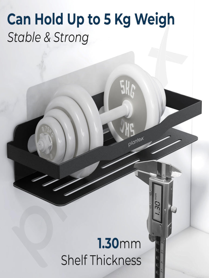 - 𝐌𝐚𝐭𝐞𝐫𝐢𝐚𝐥: Plantex bathroom shelf is made from a stainless-steel material with a powder coated black finish which has anti-rust, corrosion-free properties that ensure its strong durability.